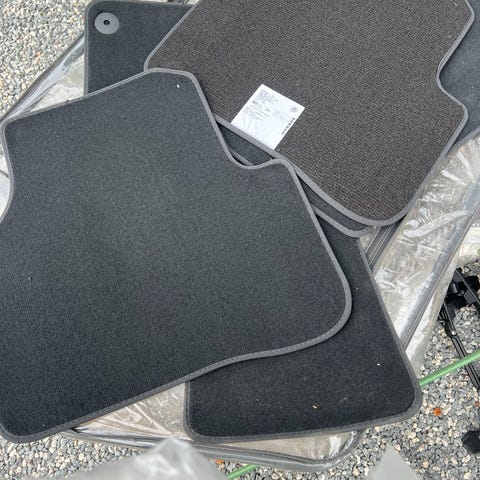 Hattehylle til bagasjerommet, nesten nye gulvmatter og mange ting til bilreparasjon, som lakk og maling i fargen LC9X.