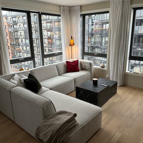 Selger en svært komfortabel og fleksibel JÄTTEBO modulsofa fra IKEA i fargen Samsala gråbeige. Sofaen er pent brukt og fremstår som nesten ny, uten synlige bruksmerker.