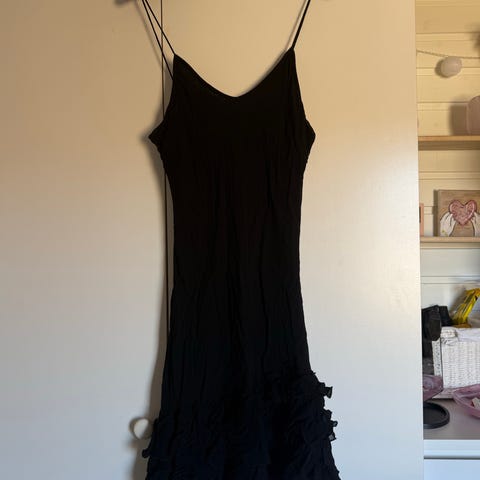 Style festkjole i størrelse M, laget av polyester. Kjolen er svart og har et mønster med detaljer i stoffet. Designet for kvinner.