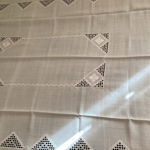 Linduk og 12 servietter i Hardangersøm. Svært lite brukt - som ny! Selges samlet for kr. 1.250