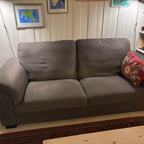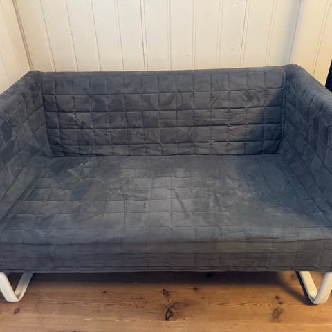 2-seter fra IKEA, Den har tynn madrass så den egner seg best som ungdomsmøbel, ev om man har egne puter man vil bruke.