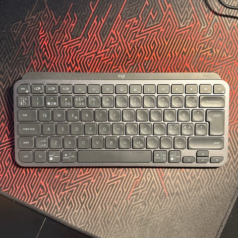 Logitech MX Mechanical Mini tastatur med mekaniske taster, svart farge, og kompakt design. Tastaturet har USB-C tilkobling.