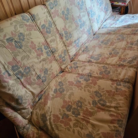 Gir bort gammel sovesofa i samband med rydding. Sofaen er gammelt arvegods, trolig fra 50-tallet. Den er lite brukt og i god stand. Passer bra som tidstypisk innredning i eldre hus.