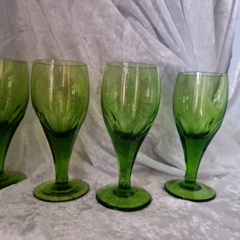 Seks retro grønne Tutti Frutti glass, Willy Johansson, Hadeland Glassverk selges, i fin stand, 100 pr stykk, 500 for alle 6.