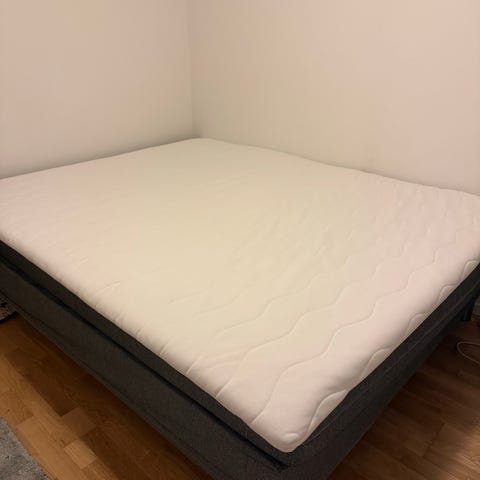Madrass på bilde følger med, men overmadrass må kjøpes selv