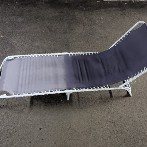 Sort firkantet bord med metallunderstell. Bordplaten har en glatt overflate og bordet har fire ben som møtes i midten under bordplaten. Passer til bruk utendørs.