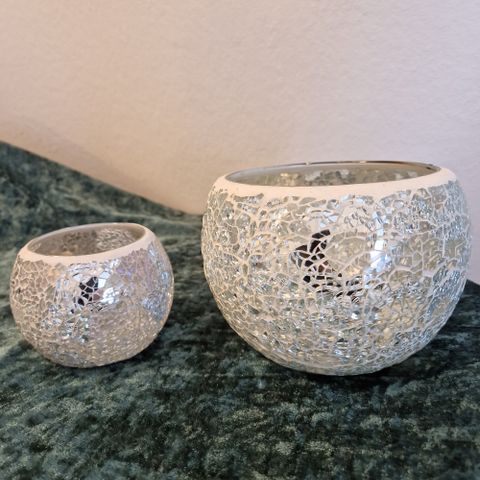 Jeg selger også flere lysholdere i mosaikk, som kan stå i stil med denne i andre annonser.