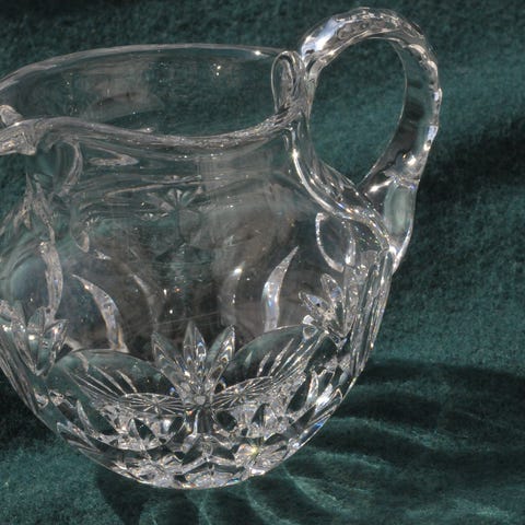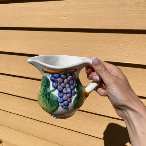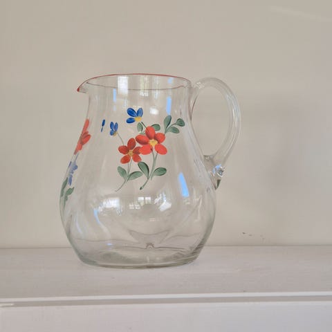 Blå Rossini-glassmugge med hank og blomsterdesign