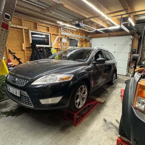 Kan følge med 2 sett greie piggdekk og et sett sommerdekk.