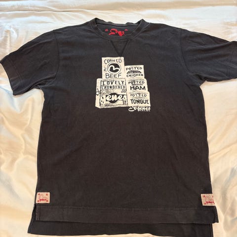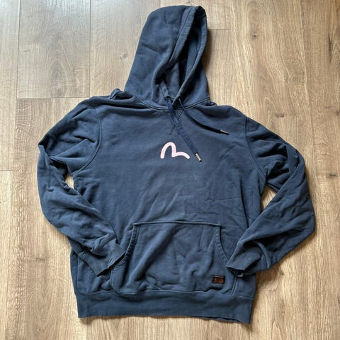 En relativt vintage Evisu hoodie, med glidelås foran. Veldig velholdt og sjelden. Størrelse LARGE. Ca. 58 cm. bred fra armhule til armhule og ca. 70 cm. lang.