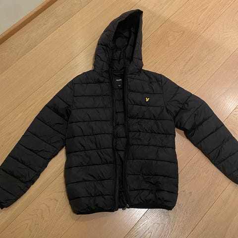 Lyle & Scott jakke i svart farge. Passer for gutter i størrelse 164. Jakken har hette og er meget pent og lite brukt. Ingen synlige merker eller slitasje.