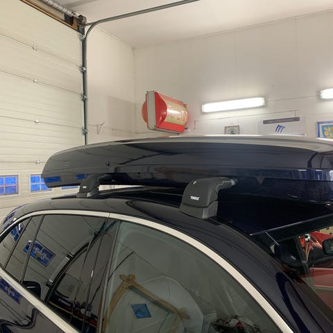 Thule wingbar sort til boksen kan følge med mot lite pristillegg.