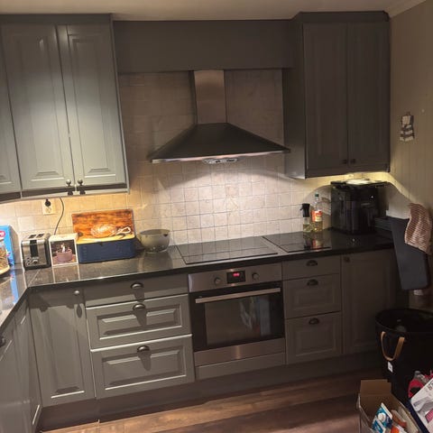 Brukt av tidligere eier. Vi skal renovere og har dermed ikke behov for den.