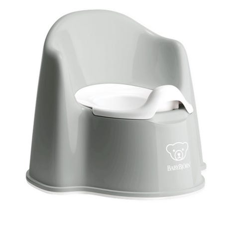 BabyBjörn barnestol i hvit plast. Stolen er designet for barn og har en enkel og funksjonell utforming som gir støtte og komfort for barnet under måltider eller lek.