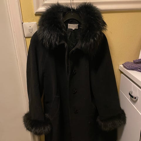 God, varm vinterkåpe i str.44 fra Forever New. Avtagbar fuskepels. Den er arvet og ikke brukt av meg, så jeg er usikker på hvor mye den er brukt, men ser ut til veldig lite. Framstår ny, vil jeg si. Eneste er en av strikkene som pelsen skal festes med er løsnet (se bilde), men det har ikke noe å si for bruken (og kan sys på igjen, hvis man kan slikt😊 den kan uansett også knyttes rundt)