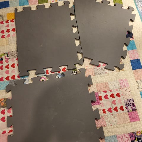 Treningsmatte med trykte instruksjoner for forskjellige øvelser.