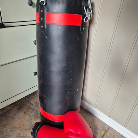Lite brukt og god som ny boksepute med boksehansker selges rimelig. Må hentes, sendes ikke.