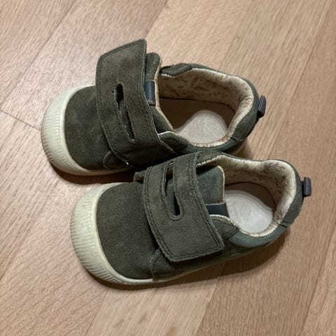 Selger et par brukte Wheat toolwear barnesko i størrelse 21. Støvlene er i god stand og er veldig hendig der sålen går over tuppen foran på skoen. Dette gjør at barnet kan krabbe med skoene uten at de for slites ut.