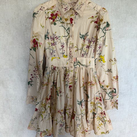 byTiMo Sommerkjole i flerfarget bomull, størrelse XS. Kjolen har et sommerlig design med knapper foran og er laget av 100% bomull både i ytterstoff og fôr. Passer til kvinner. Brukt 2 ganger.