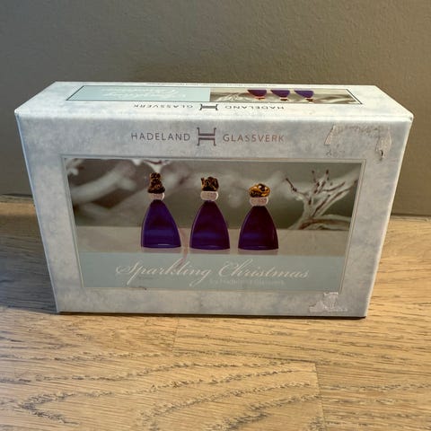 Vintage julekuler - 9 stk. ulike str. henger sammen i rødt bånd. Original eske