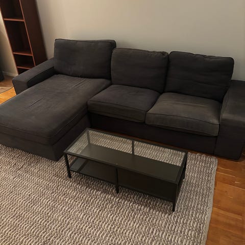 Gir bort en romslig og komfortabel hjørnesofa. Sofaen er i helt grei stand og har vært i normal bruk.