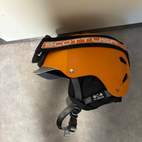 Brukt hjelm og briller selges. Str S.