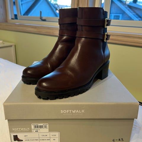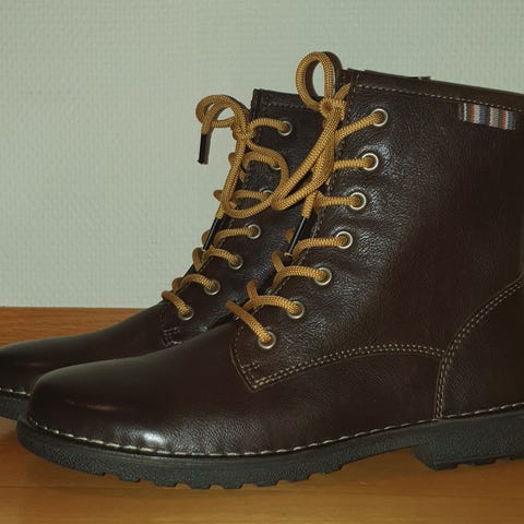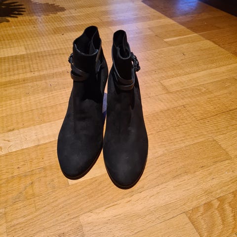 Så gode som nye ECCO støvletter i semsket skinn i str.40 (store i størrelsen!). Kjøpt for mange år siden. Ble kun brukt én gang. Selges fordi de er litt for store og bare blir stående. Jeg bruker normalt 39 og 40, mens disse føles som str 41 evnt en stor størrelse 40. Synd, for jeg liker dem veldig godt!