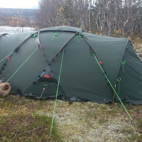 Teltet er litt brukt men i god stand med stenger og kroker.Teltet er brukt av personer uten dyr og røyk og sebdes fraktfritt innen Norge.