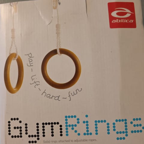 Abilica Gym Rings treningsringer laget av tre, designet for kroppsheving og styrketrening. Kan brukes til ulike øvelser som krever grepstyrke og kroppsbalanse.