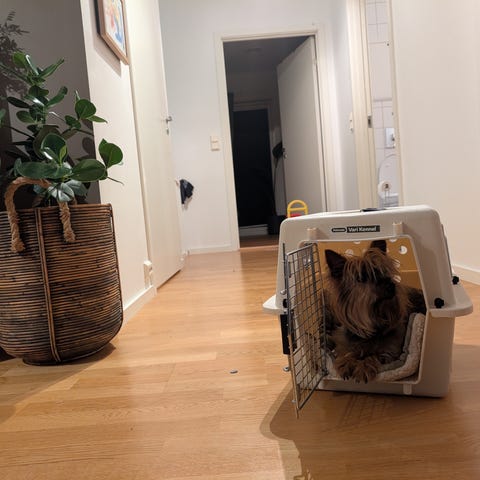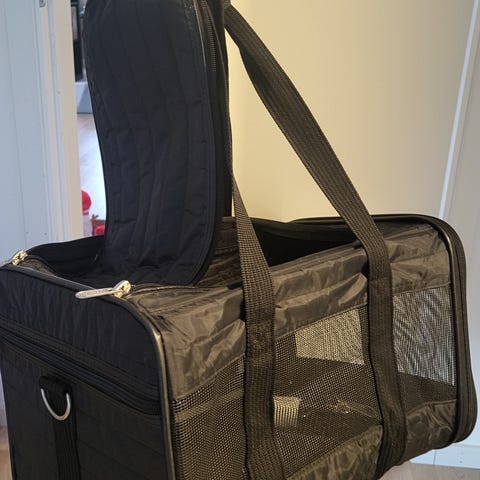 Transportbur for kjæledyr med metallramme og plastpaneler. Bur med dør i metall for enkel tilgang. Egnet for transport av små til mellomstore kjæledyr.