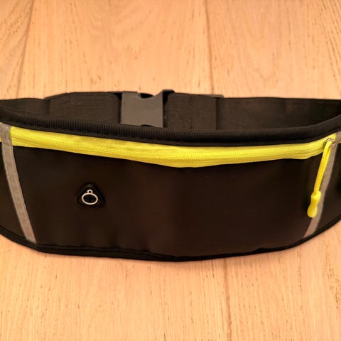 Løpebelte for oppbevaring av små gjenstander. Egnet for bruk under aktiviteter som løping, turgåing eller trening.