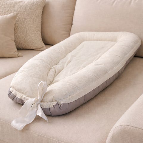 Nydelig babynest i beigegrå med hvite skyer. Trekk av 100% bomull.