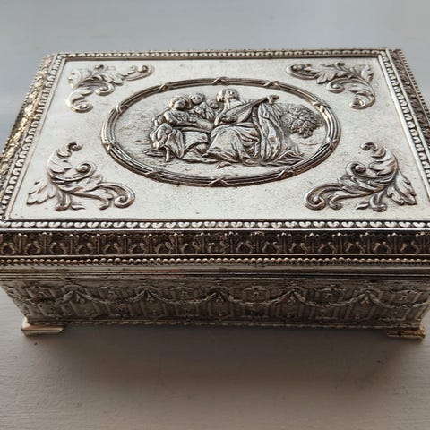 Antikk halskjede + anheng med plass til to bilder i sølv 925