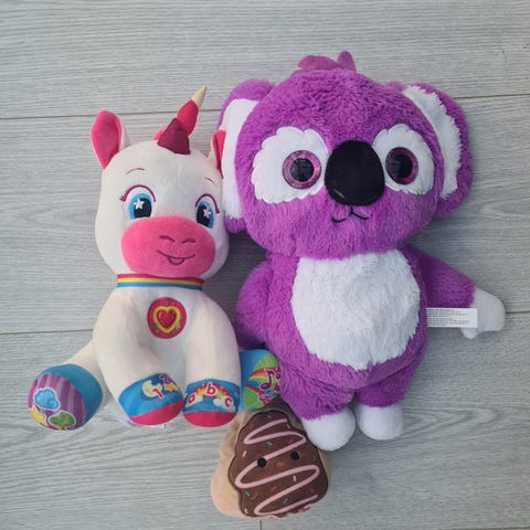 Stor hvit og rosa enhjørnings bamse og ninja turtles pute selges for 30kr per stk eller 50kr samlet.😁