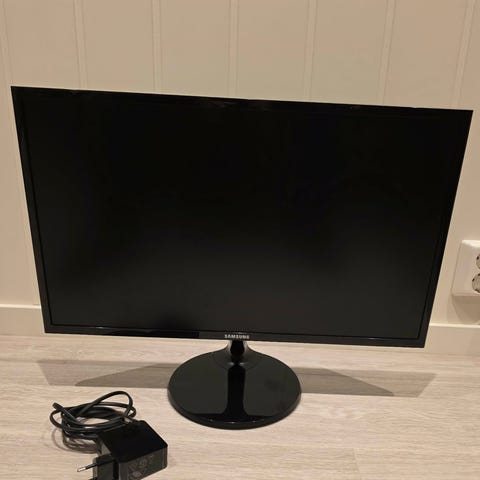 Stilfull Samsung 24" skjerm med hvit ramme. Skjermen passer til bruk som dataskjerm eller for visning av multimediainnhold.