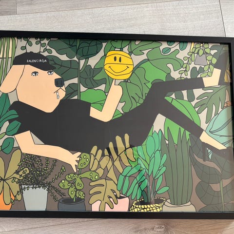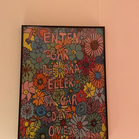 Signert kunsttrykk av Anette Moi. Nr 14/15. Rammet inn hos "Rammeverkstedet" i Oslo. Falt ned en gang grunnet uforsiktig bæring av møbler, og har derfor fått seg ett hakk og to i rammen (se bilder).