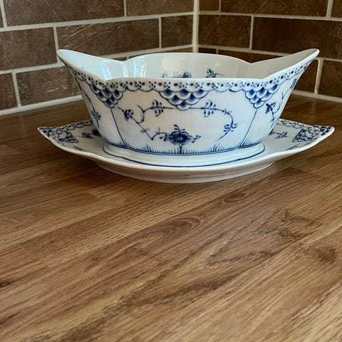 Musselmalet helblonde sauseskål på fast fot nr 1105