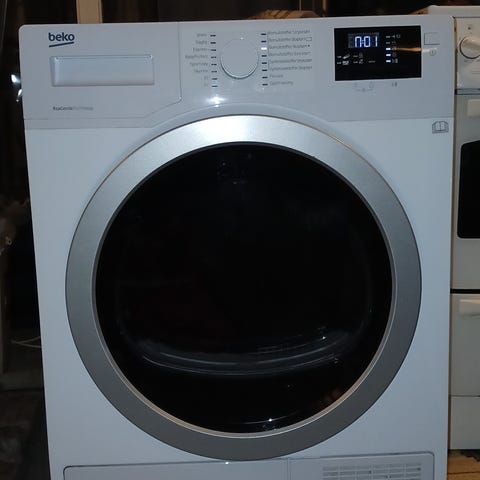 Gorenje Kondens tørketrommel med kondensasjonsteknologi. En hvit tørketrommel med frontmatet trommel og digitalt display. Passer til tørking av klær og tekstiler.