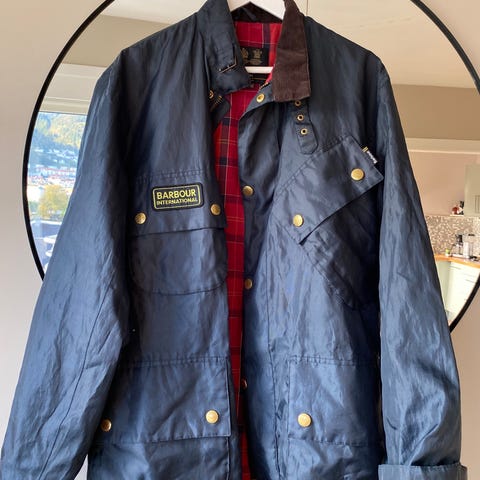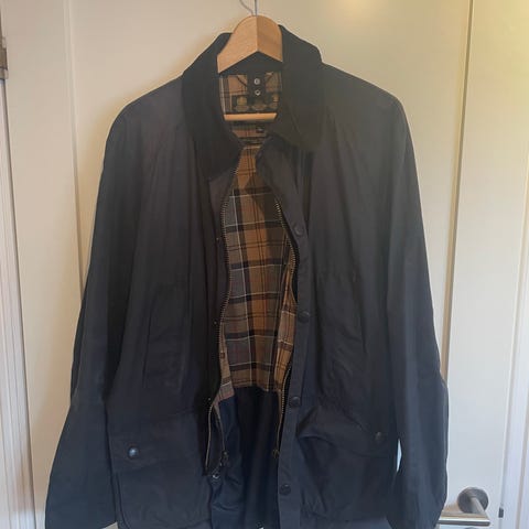 Barbour Jakke i fargen blå, størrelse XL. Laget av ullmateriale. Jakken er designet for menn og har detaljer som forsterkede albuer og en quiltet innerfôr. Perfekt for senhøsten og ikke minst…vinteren ❄️