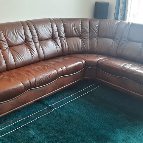 solid, romslig og god skinnsofa, 260 x 225 cm