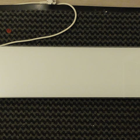 Svært lite brukt Mill panelovn med glassfront, med et moderne design som passer godt inn overalt. Ovnen er 250 W – egnet for rom på 2-5 m², også godkjent for montering i våtrom.