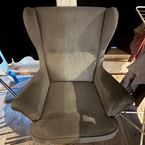 Meget pen sofa lenestol som har stått i en liten lese krok. Nesten ikke brukt.