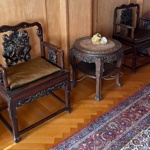 Antikt kinesisk salongmøblement med perlemorsinnlegg – komplett sett