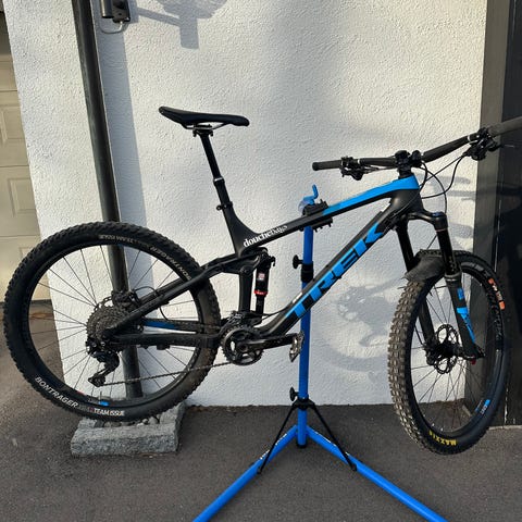 Selger min fulldemper grunnet lite bruk. Meget god stand, ingen feil unntatt noen obligatoriske steinsprut. Moderne geometri (66 grader styrevinkel) uten å bli for ekstrem eller miste lekenheten. Størrelse er medium, men ville kalt den S/M etter dagens standard. Geometrien er veldig lik på Santa Cruz sin 5010 fra samme periode.
