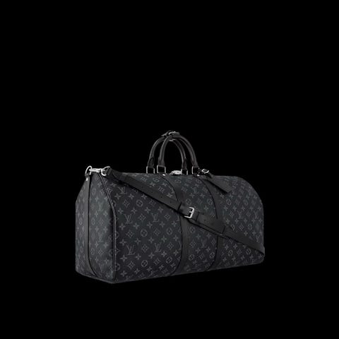 Louis Vuitton keepall 55 llær weekendbag i svart farge, designet for unisex bruk. Vesken har en romslig kapasitet og praktiske håndtak, egnet for reiser og daglig.