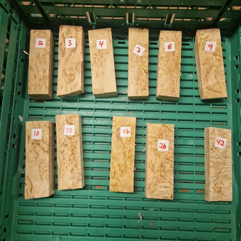 Dreid kopp i bjørk med knute i lær selges