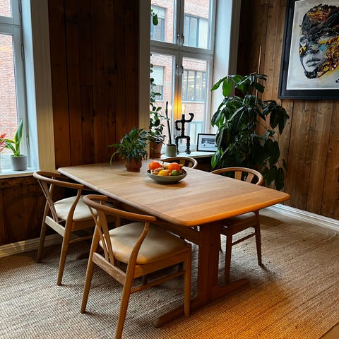 Spisebordet er fra Skovby (dansk design) og modellen heter sm 118. Kjøpt på Bohus. Uttrekkbart, ekstra plate kan kjøpes hos Bohus. Nypris på bordet: 14899,-