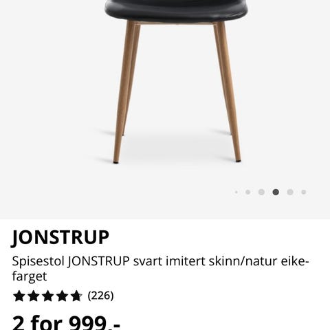 To ubrukte stoler selges. En av de er montert opp, den andre ligger fortsatt i plast.