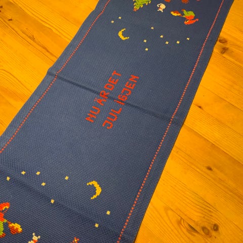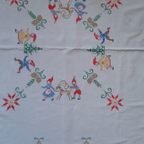 Selger et flott pyntehåndkle med svensk motiv. Stoffet er en type lin.