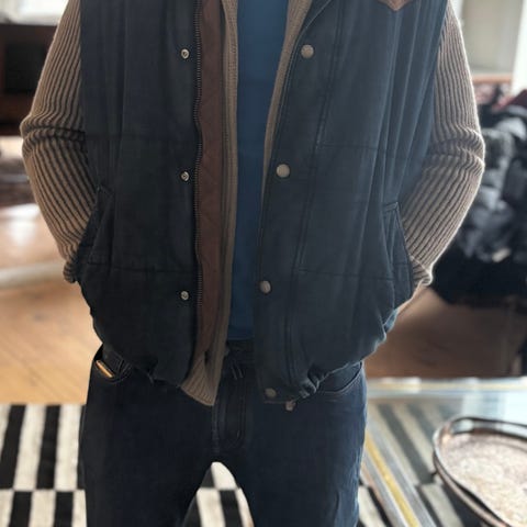 Pent brukt cardigan til herre. Blanding av ull og cashmere.